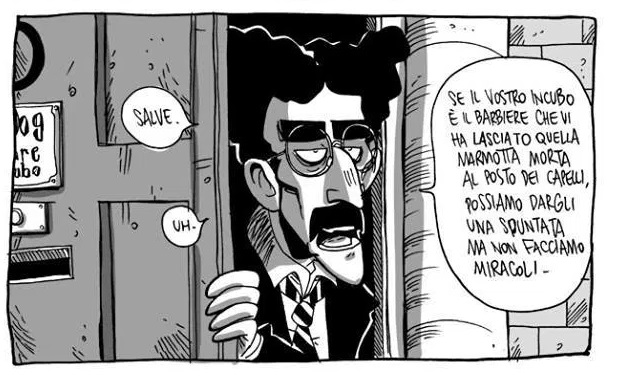 “Papà sto male” di Maicol & Mirco, invece, è un trauma. E’ originale, in qualche modo geniale, e personalissimo come tutta la produzione di questo strano autore. Eppure, Maicol & Mirco funziona molto meglio negli sketch brevi e fulminanti per cui è conosciuto, mentre le 32 pagine dedicate a Groucho non mi hanno entusiasmato. La domanda in testa è: compreresti quest’albo, se non facesse parte del cofanetto? Risposta: mah.