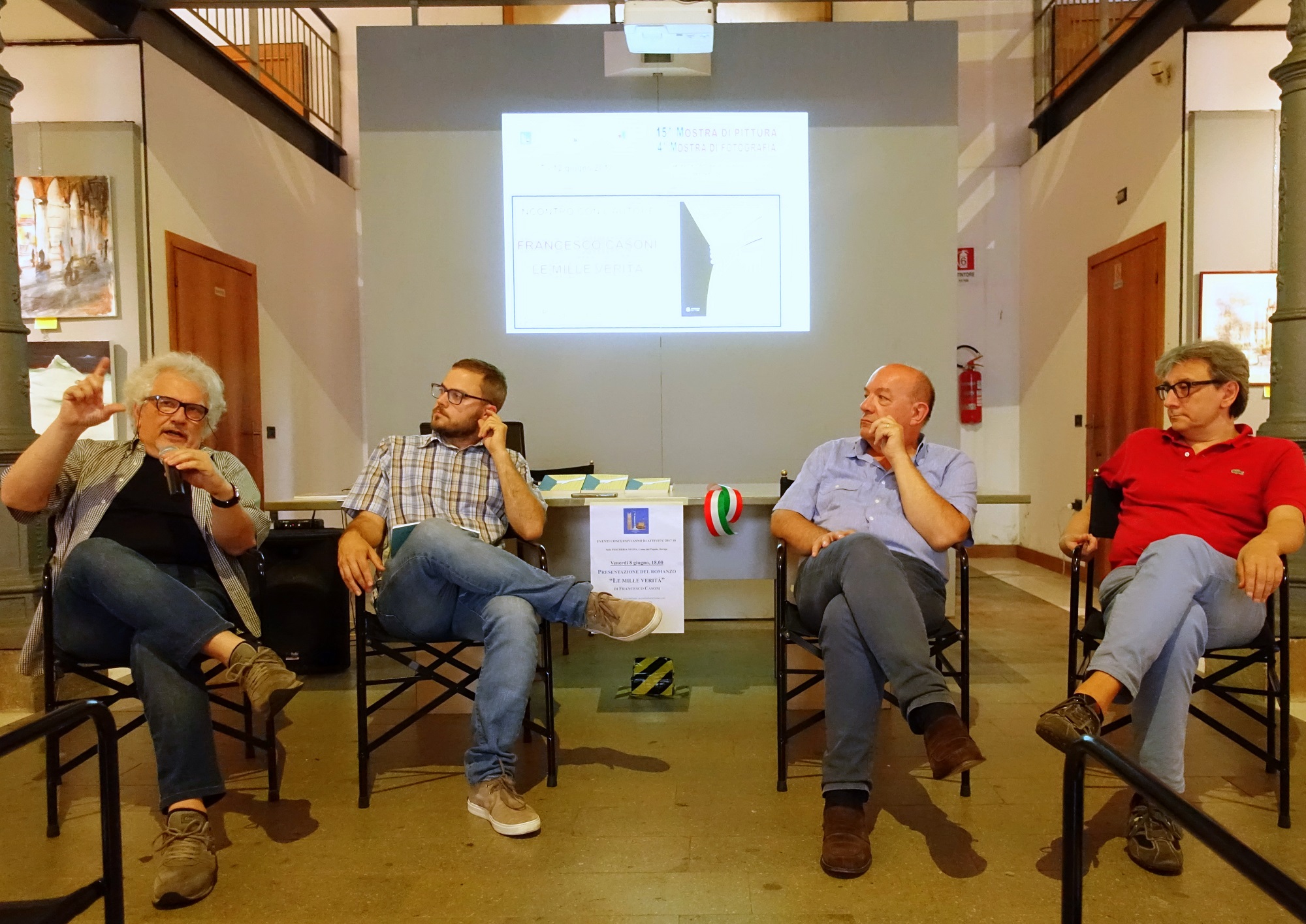 Così, al posto della consueta chiacchierata tra me e Paolo, è nata un’ampia chiacchierata a quattro, in cui Sandro e Mario hanno parlato del mio libro in modo tanto serio e puntuale, che a me è rimasto il mio ruolo preferito: cercare di far ridere il pubblico.