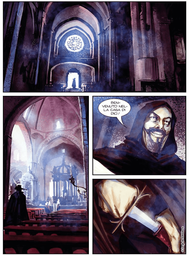 La storia, ambientata nella Spagna del Seicento, racconta preciso contesto storico e religioso, ma anche elementi del folklore locale e gitano (che Manfredi aveva già affrontato in uno dei suoi racconti di “Ultimi vampiri” e in un albo di Magico Vento) e risvolti teologici. A partire – questa è la forza delle storie di Manfredi – dai personaggi, come l’intrigante protagonista: tormentato, a tratti malinconico, ma anche risoluto e intrepido.