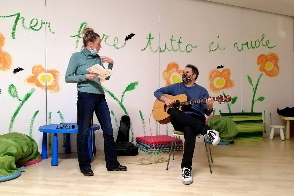 Con me, in questa nuova tappa di un “book tour” sempre in divenire, c’era nuovamente l’amico Enrico Buoso, con la sua chitarra, già rodato a “Voci per la Libertà“. Ancora una volta a proporre una vera e propria colonna sonora della storia, con un tema per ciascun personaggio.