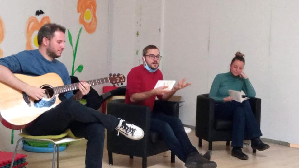 Con me, in questa nuova tappa di un “book tour” sempre in divenire, c’era nuovamente l’amico Enrico Buoso, con la sua chitarra, già rodato a “Voci per la Libertà“. Ancora una volta a proporre una vera e propria colonna sonora della storia, con un tema per ciascun personaggio.