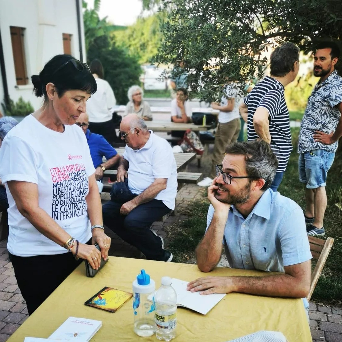 Il finale alla “Bocalina” è stato perfetto. Non solo per il luogo, davvero delizioso, ma soprattutto per l’atmosfera: una chiacchierata e un rinfresco sull’aia, con Francesca e alcuni dei miei più cari amici tra il pubblico, la presenza di Emergency, mia figlia e i suoi amici che scorrazzavano tra galline e conigli.