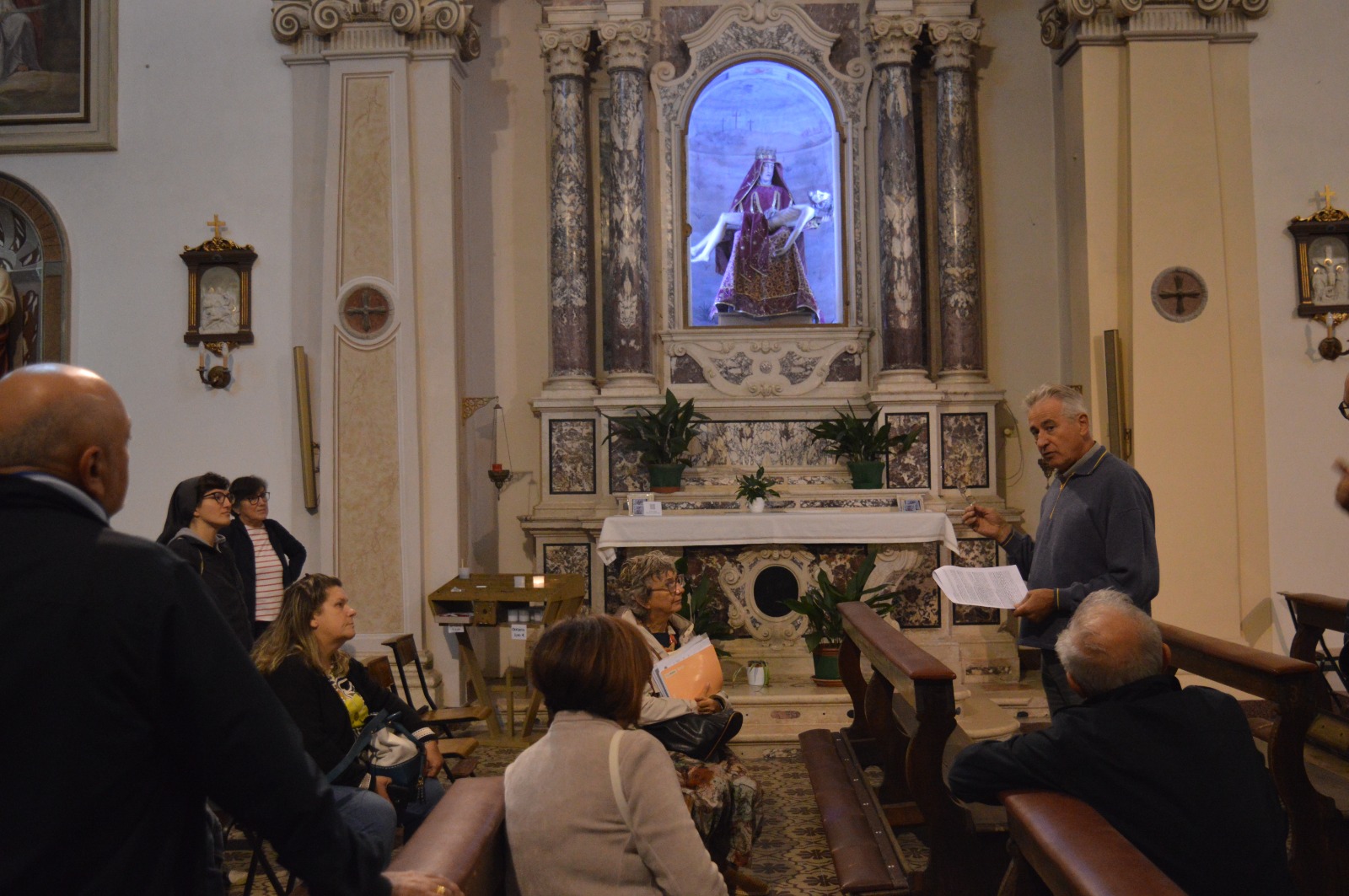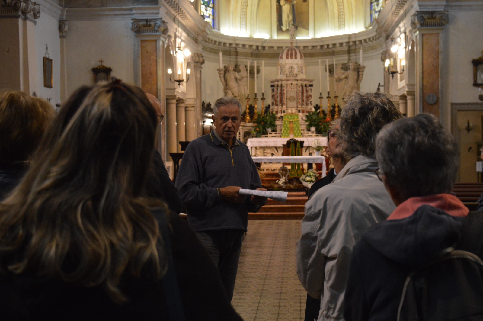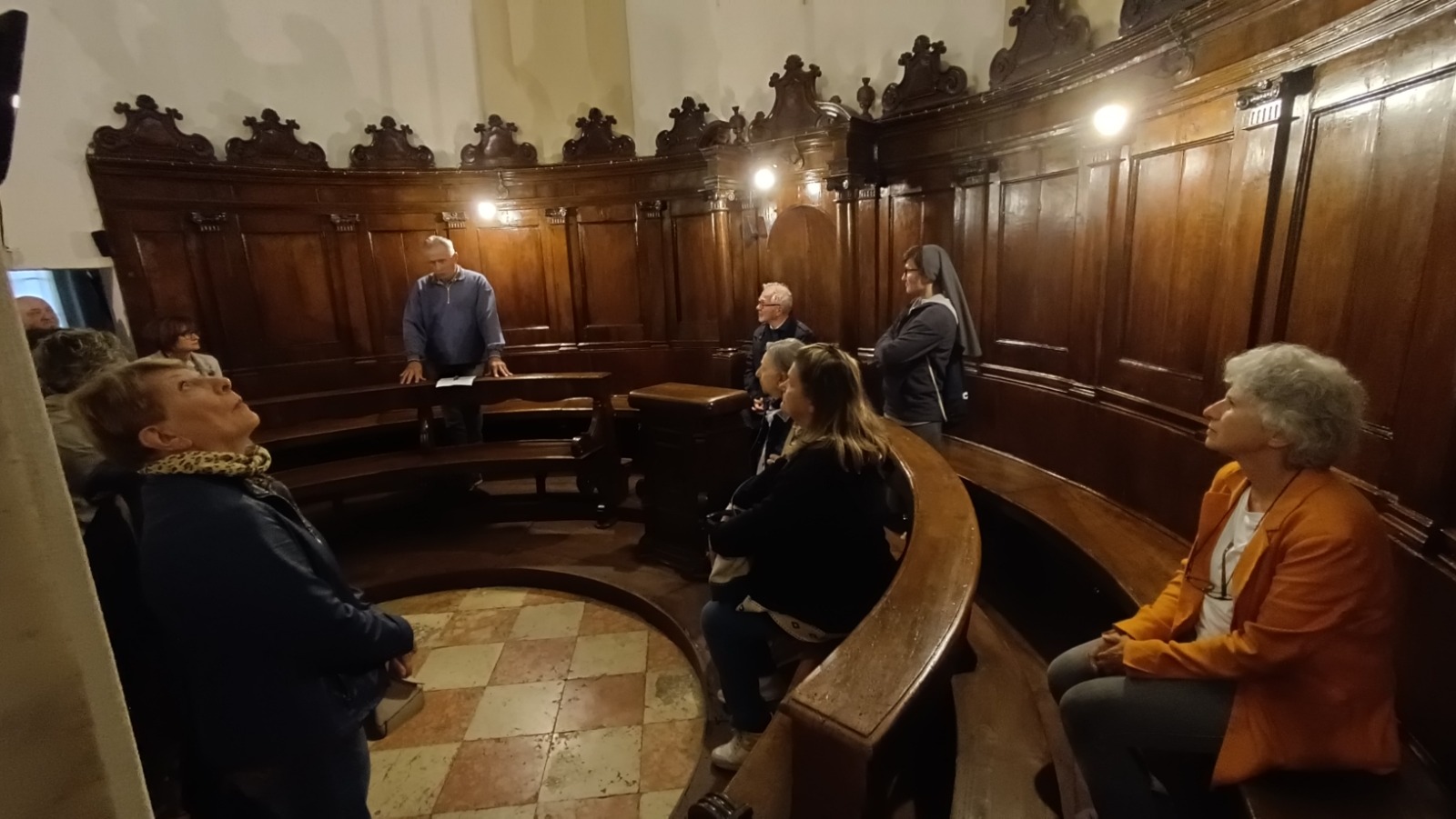 Recentemente proprio grazie al FAI è stato recuperato il coro ligneo, appena tornato come nuovo grazie all’opera certosina dei restauratori. Ma l’intera chiesa è un piccolo tesoro, non solo per la bellezza delle cappelle e degli affreschi, ma anche per la quantità di storie che racchiude. E che rivivono attraverso le parole di Vincenzo.