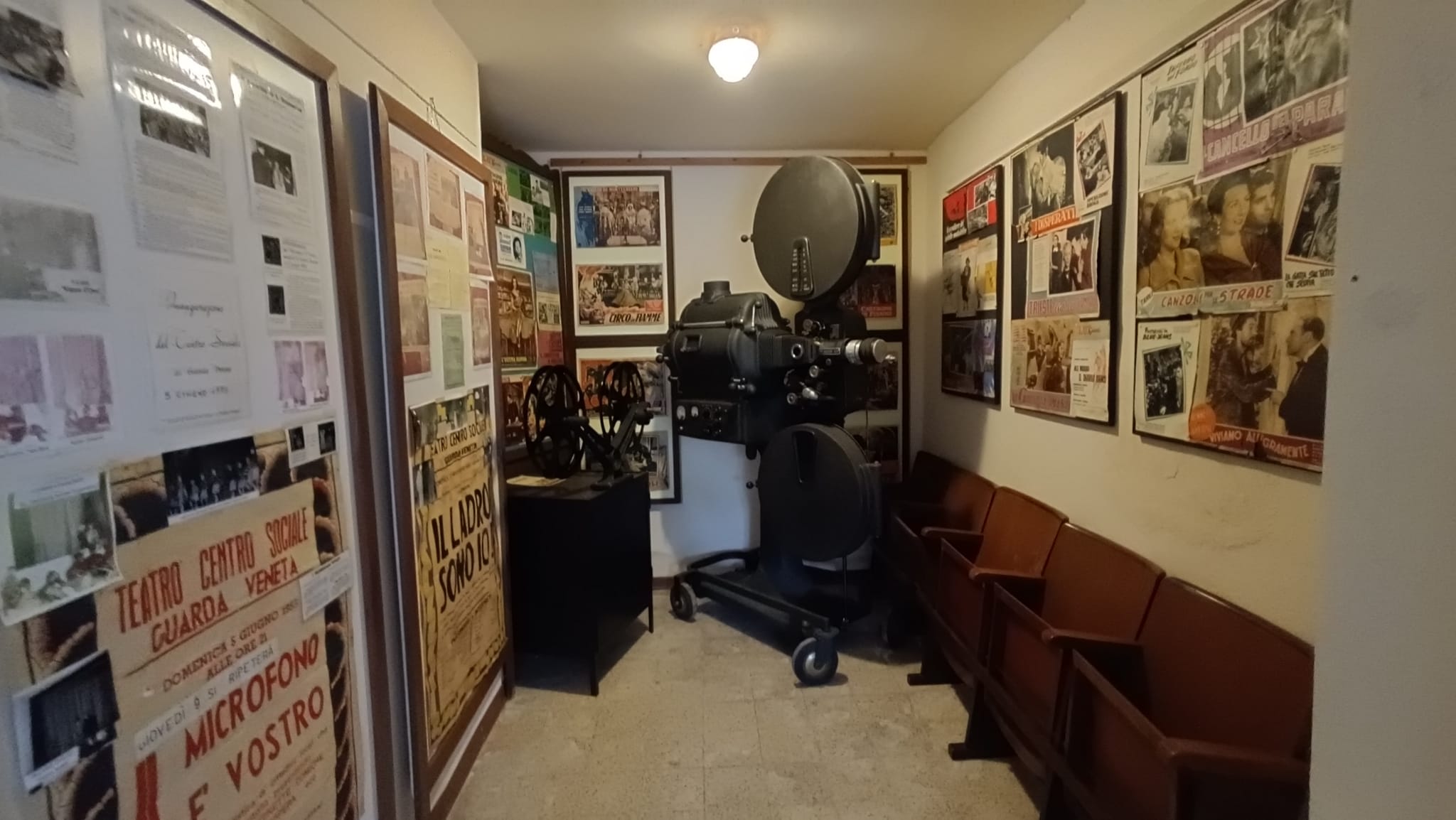 La prima immagine che ti accoglie all’ingresso del circolo, dietro alla chiesa di Guarda Veneta, è un piccolo museo di cimeli: è quanto rimane del cinema del paese, con il suo proiettore degli anni Cinquanta ormai spento, ma perfettamente conservato.