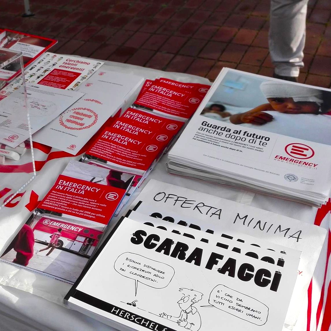 Benché interrotta dalla preghiera interreligiosa della sera (vabbè), l’infuocata prolusione di Herschel invitava a comprare copie di “Scarafaggi” al banchetto di Emergency. Da quel momento in poi, infatti, qualche decina di copie residue del libro sono disponibili ai banchetti dell’Ong italiana, un dono di Herschel & Svarion, il cui ricavato sostiene interamente i progetti sanitari e umanitari .