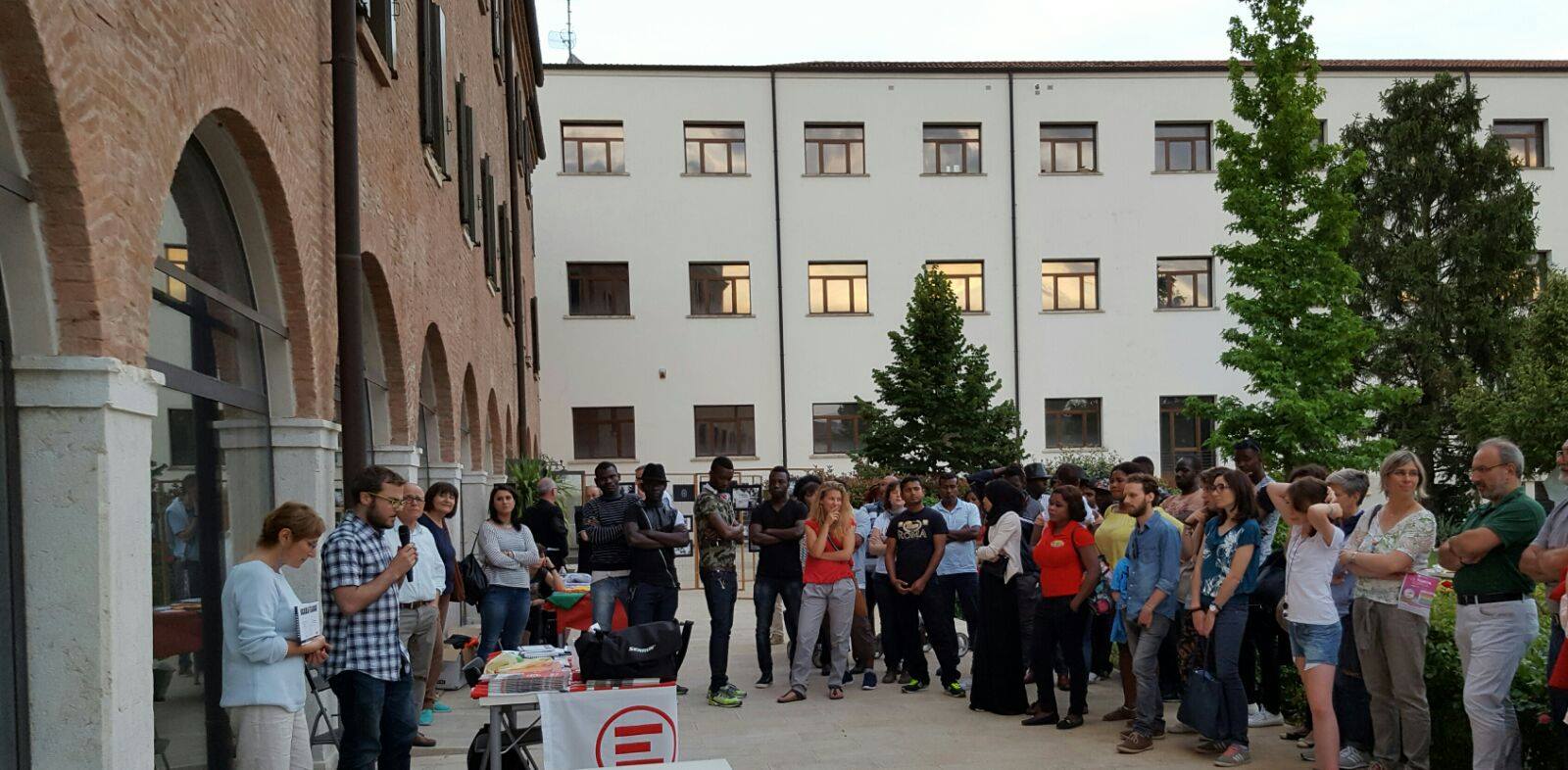Ma perché limitarsi? Ed ecco perché una piccola presentazione di “Scarafaggi” alla Giornata del Rifugiato 2016, “Rifugiamoci”, all’interno del Seminario vescovile di Rovigo, diventa una sorta di show stile imbonitore da fiera. Tra gli sguardi attoniti dei partecipanti, Herschel elenca i possibili usi del libercolo, dalla paletta antimosche (o antizanzare) al tagliere di design, dal racchettone da spiaggia al ventilatore ecologico.