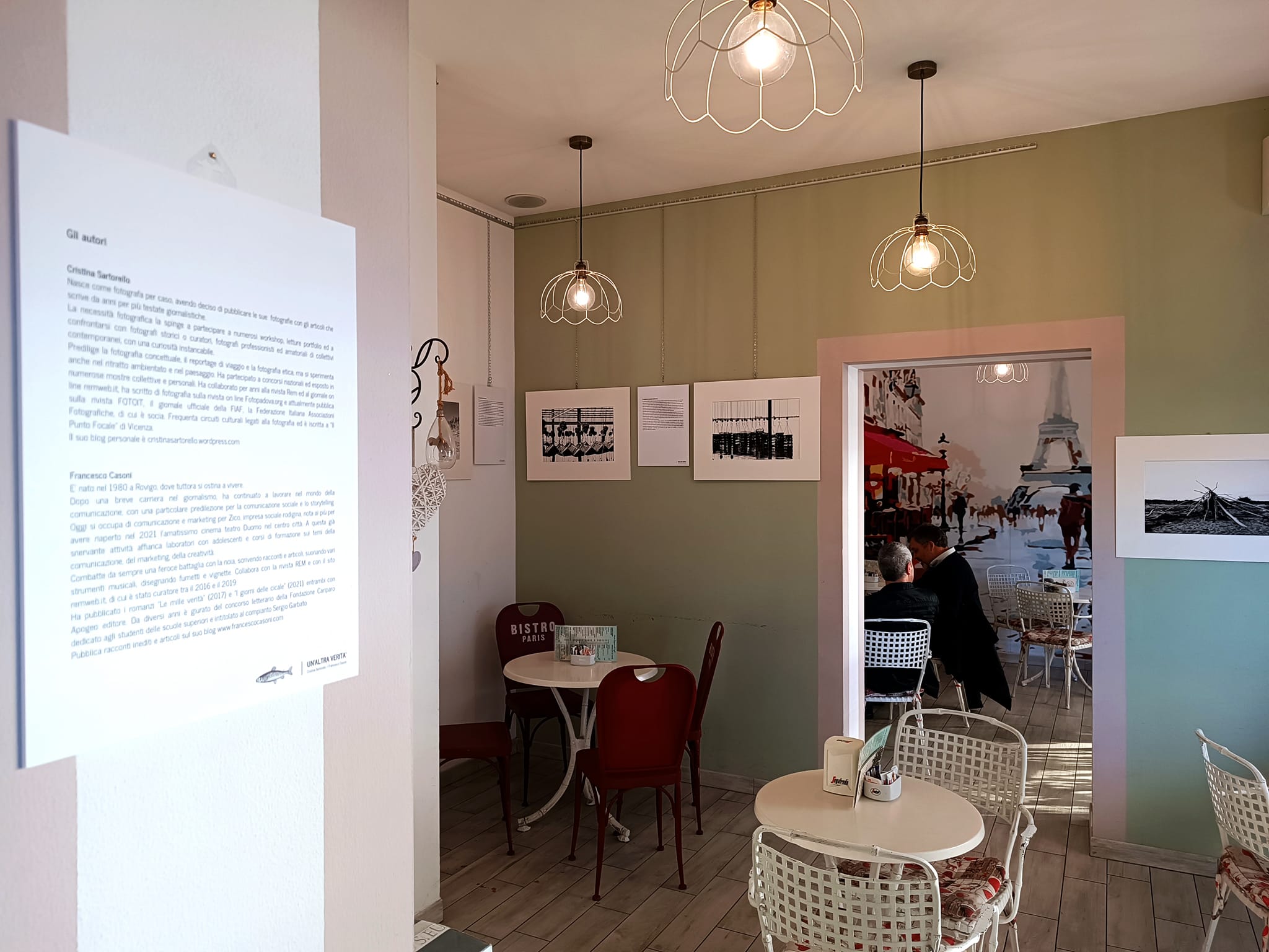 Ci siamo detti: facciamo qualcosa di diverso. Ed è nata l’idea di scrivere dei racconti, ispirati alle foto di Cristina Sartorello, che avrebbe allestito una mostra proprio nel periodo in cui mi era stato chiesto di presentare il libro. Ne è nata “Un’altra verità” (titolo coniato da Giampaolo Gasparetto, mi sembra), atipica mostra fotografico/letteraria, in cui le immagini in bianco e nero di Cristina sono stravolte da didascalie letterarie che immaginano ogni cosa possibile (qui racconto come andò).