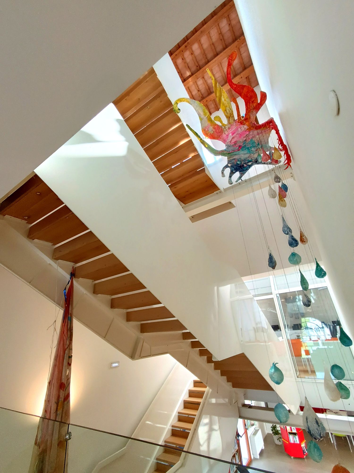 Questo, più ancora della bellezza delle sale e della quantità di libri a disposizione, mi ha fatto immaginare che questa spettacolare biblioteca del piccolo comune sia il cuore della comunità. O quanto meno un luogo vivo, vitale, capace di accogliere e creare relazioni, oltre che bello e luminoso.