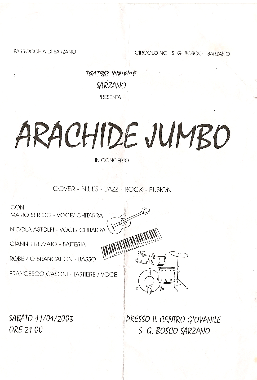 A gennaio, intanto, i cinque si esibiscono di nuovo a Sarzano, come si evince dal volantino dove vengono presentati come cover band “blues jazz rock fusion”, mentre per modestia evitano di elencare i generi flamenco, samba e bossa nova (effettivamente frequentati), la tarantella, il death metal e le musiche tradizionali degli indiani Hopi. (…)