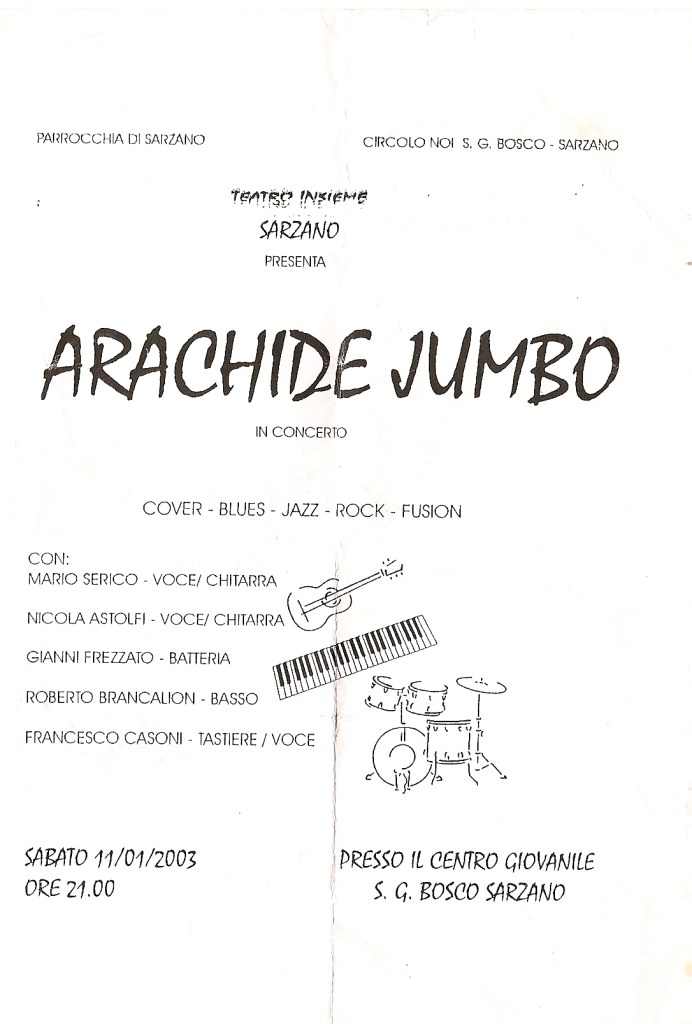 Procacciato da Gianni arriva un concerto in un locale a Prejon, ridente e semisconosciuta località dall’altro lato dell’Adige (…) Gli Arachide Jumbo sono chiamati ad animare la serata, beneficiando del fatto che il pubblico è troppo sfatto per apprezzare o meno la qualità dell’esecuzione. E’ un’ottima occasione, insomma, per fare del casino.