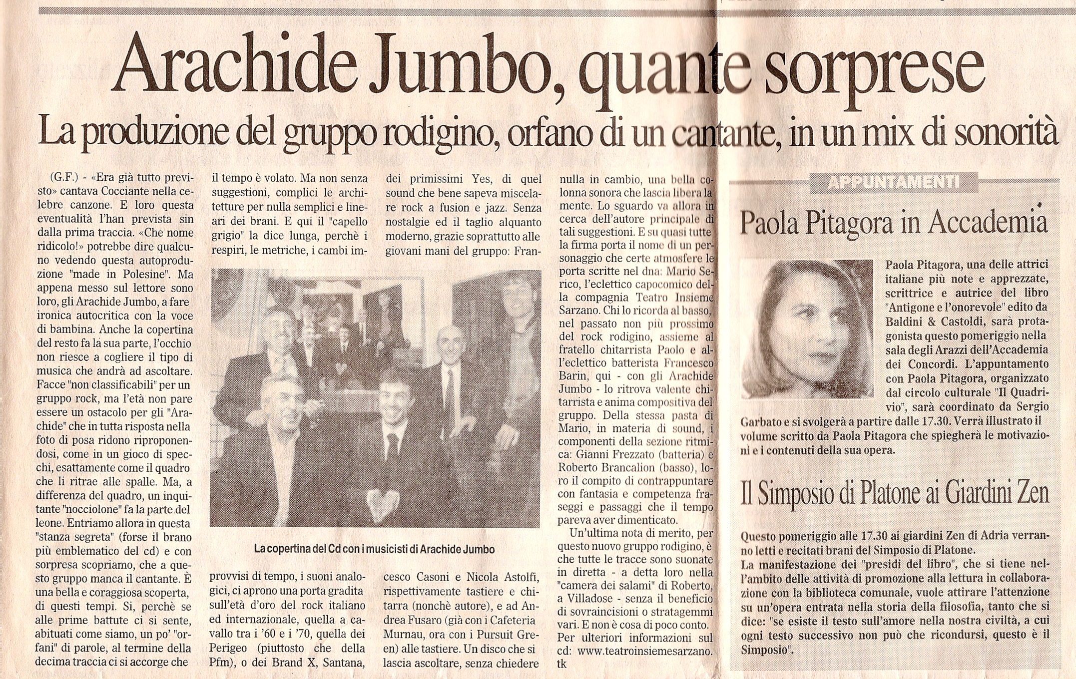 In materia di ospiti alle prove degli Arachide Jumbo, ci sarebbe anche un aneddoto conosciuto da tutta la band, avvenuto nel marzo 2004, sull’irruzione in sala prove di due avvenenti “amiche” dall’accento dell’Est Europa. Amiche di chi? (…).*