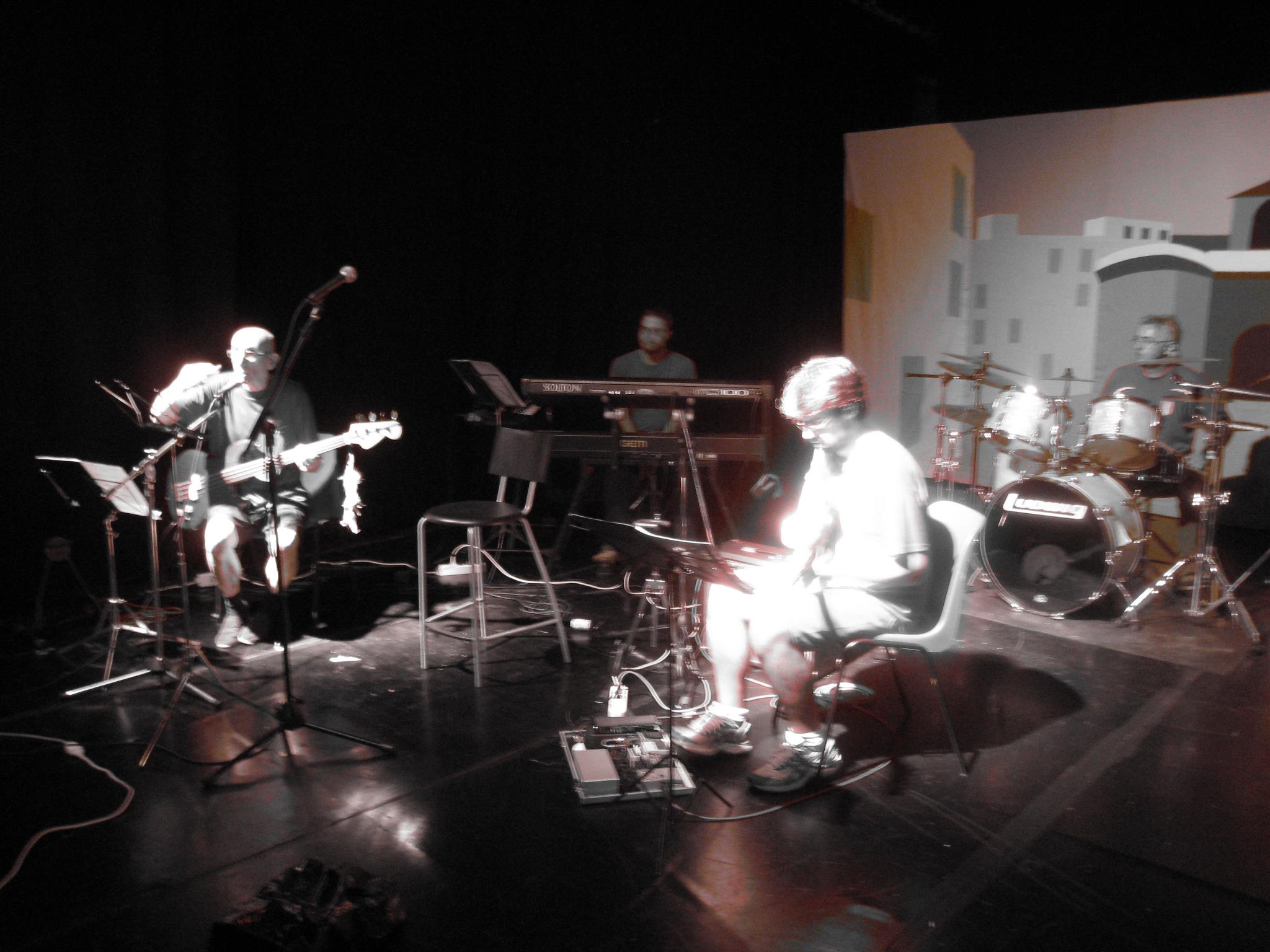 Naturalmente anche questa volta l’indistruttibile Nicola, sopravvissuto negli anni a febbri e menomazioni di vario genere, riesce ad arrivare al concerto sufficientemente rattoppato per suonare e fa rientrare da un weekend a Rosolina Mare, appena iniziato, l’amico Andrea Busin per sostenere il gruppo alla chitarra solista.