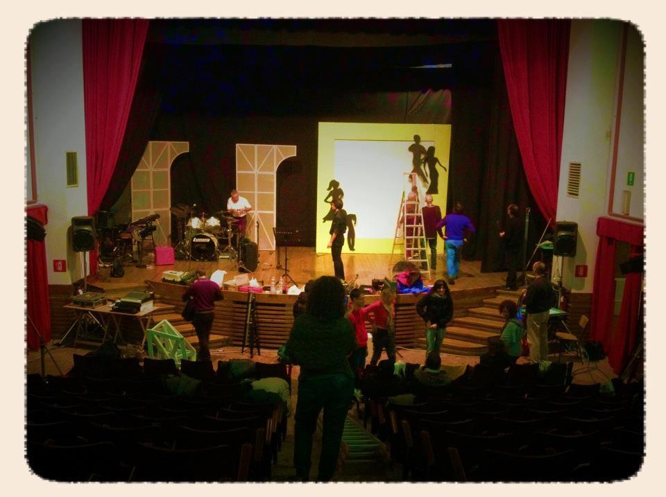 Nella foto sotto, l’allestimento dello show e alcuni momenti delle prove. (Non esistono foto dello spettacolo, non essendoci il budget per un fotografo).