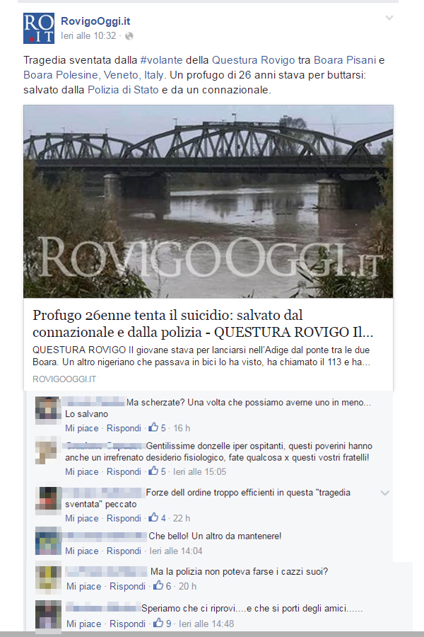 Di Salvini si parla anche troppo. Sulla sua strategia di comunicazione - tra social network e invasione dei palinsesti - s'è detto e scritto moltissimo. Più che Salvini, mi inquietano i suoi fans. Lasciamo anche perdere i commenti razzisti, quelli che inneggiano al Ventennio, quelli che insultano i "pidioti", "sinistroidi", "buonisti" e quelli che invocano... Continua a leggere →